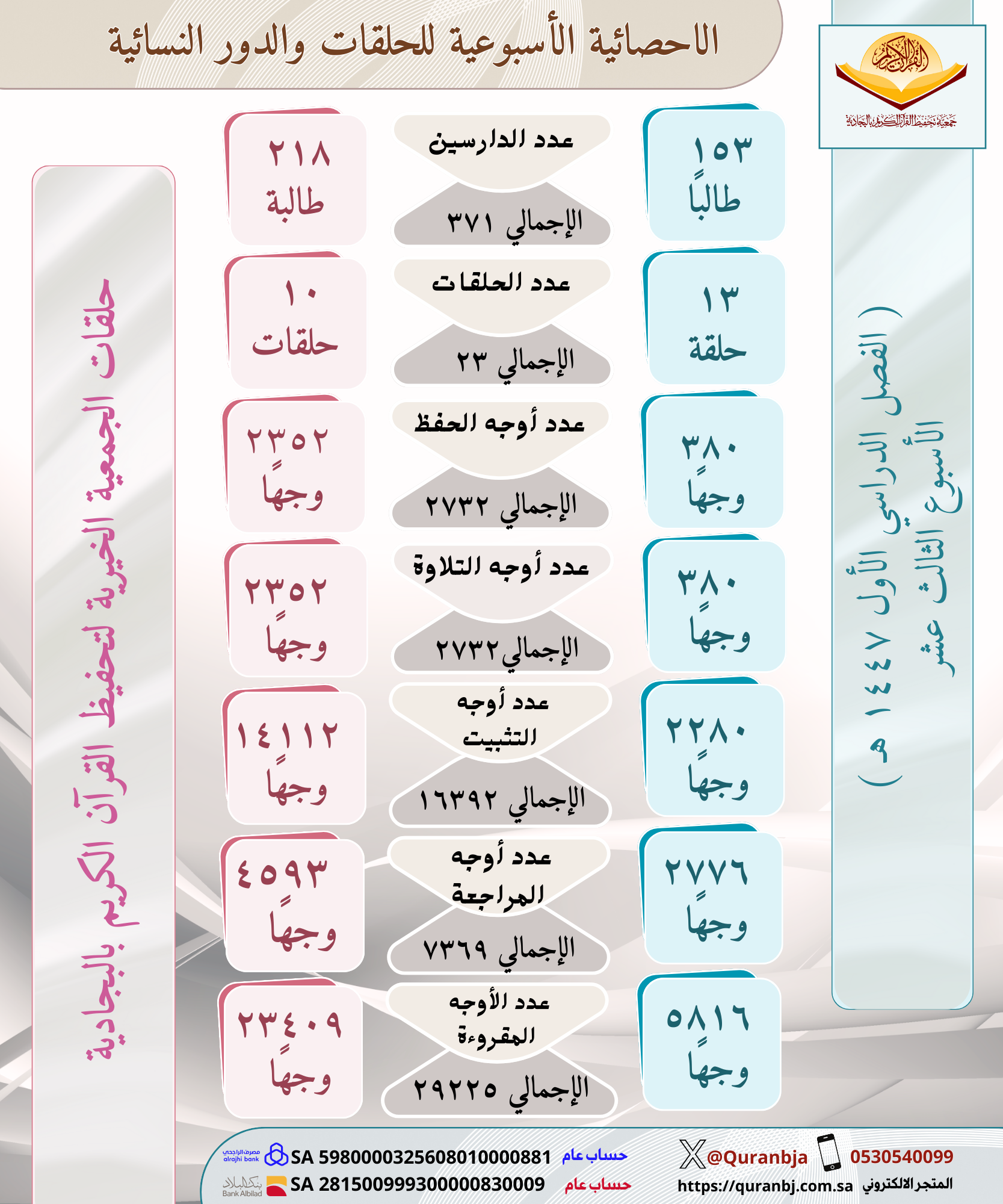 الإحصائية الأسبوعية للحلقات والدور النسائية