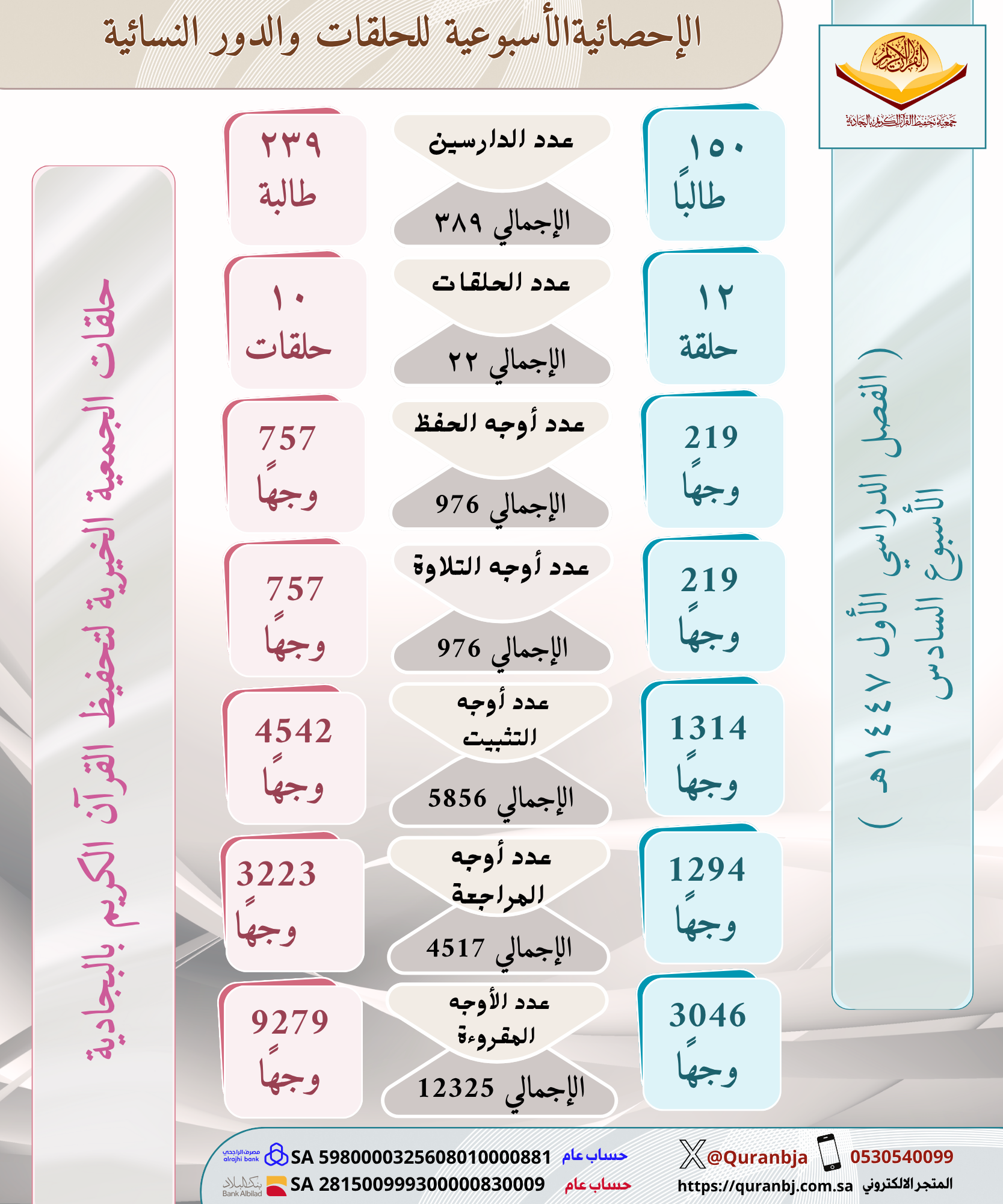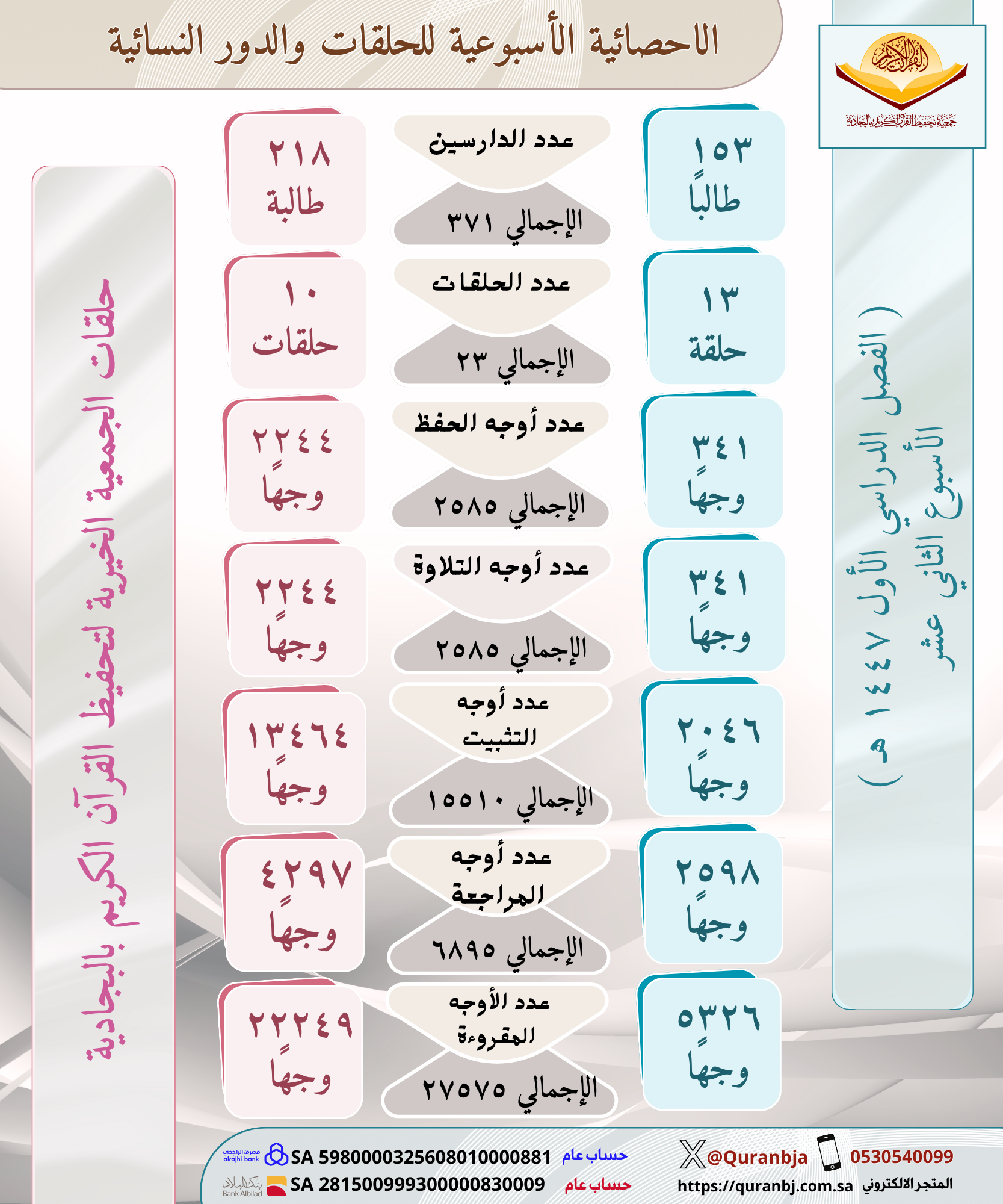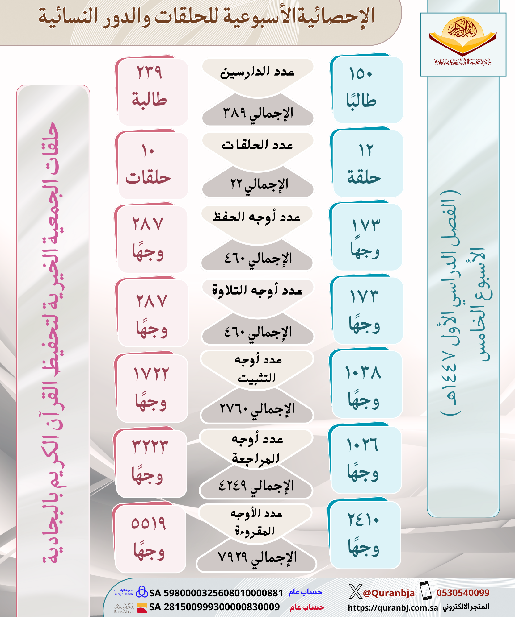الإحصائية الأسبوعية للحلقات والدور النسائية